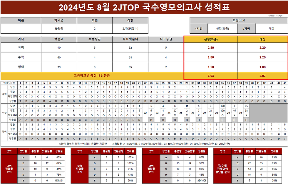 정답률 A,B 수준에 100% 정답이면 중학교 2학년 수준을 완변학게 이해하고 문제를 풀수 있는 능력이 있는 것 입니다. C는 문제 유형파악이 더 필요하고. D, E는 틀리는 것이 정상 입니다.